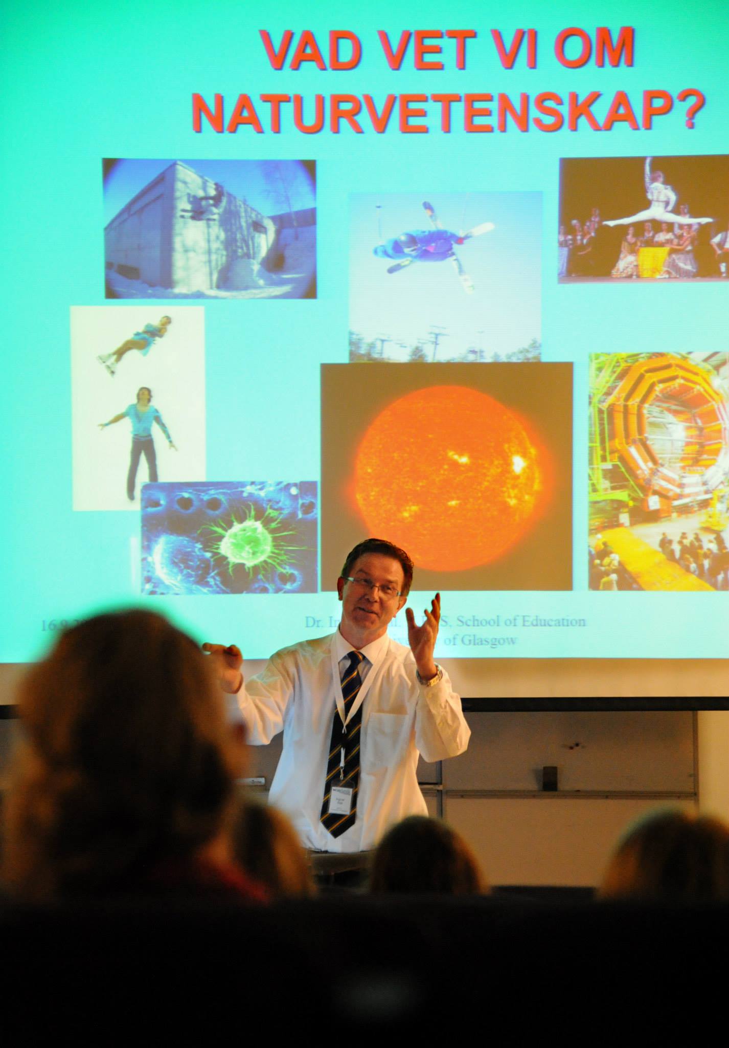Torsdagskvällens första föreläsning var gemensam för elever och lärare. På plats fanns också, förutom de lärare som följde med under hela Campen, lärare som kommit för just denna forbildningskväll. Temat var givet. ”Vem behöver naturvetenskaper?” och ”Varför behöver de olika naturvetenskaperna varandra?”