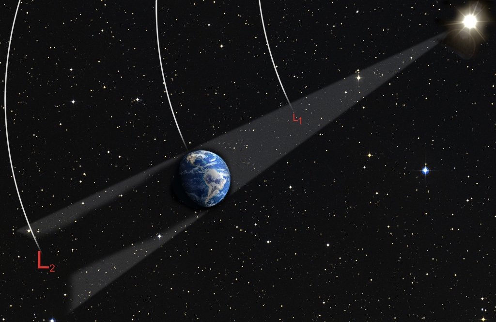 Lagrangepunkt 2 hyser flera intressanta rymdteleskop, bland annat Planck och Herchel. Ett senare tillskott till satellitflottan i L2 är GAIA som bland annat ska ge oss en mycket detaljerad 3D-karta över vår galax och dess närmaste omgivning. James Webb Space Telescope, som är ett stort samarbetsprojekt mellan ESA, NASA och CSA, är planerat att skjutas upp 2018 och då placeras i L2. I L2 är dessa teleskop skyddade från jordens värmestrålning och har en betydligt lugnare bana i det att de egentligen roterar med jorden kring solen. Genom att de är vända bort från jorden är de samtidigt hela tiden vända bort från solen och kan skyddas från solens strålar med en sköld.