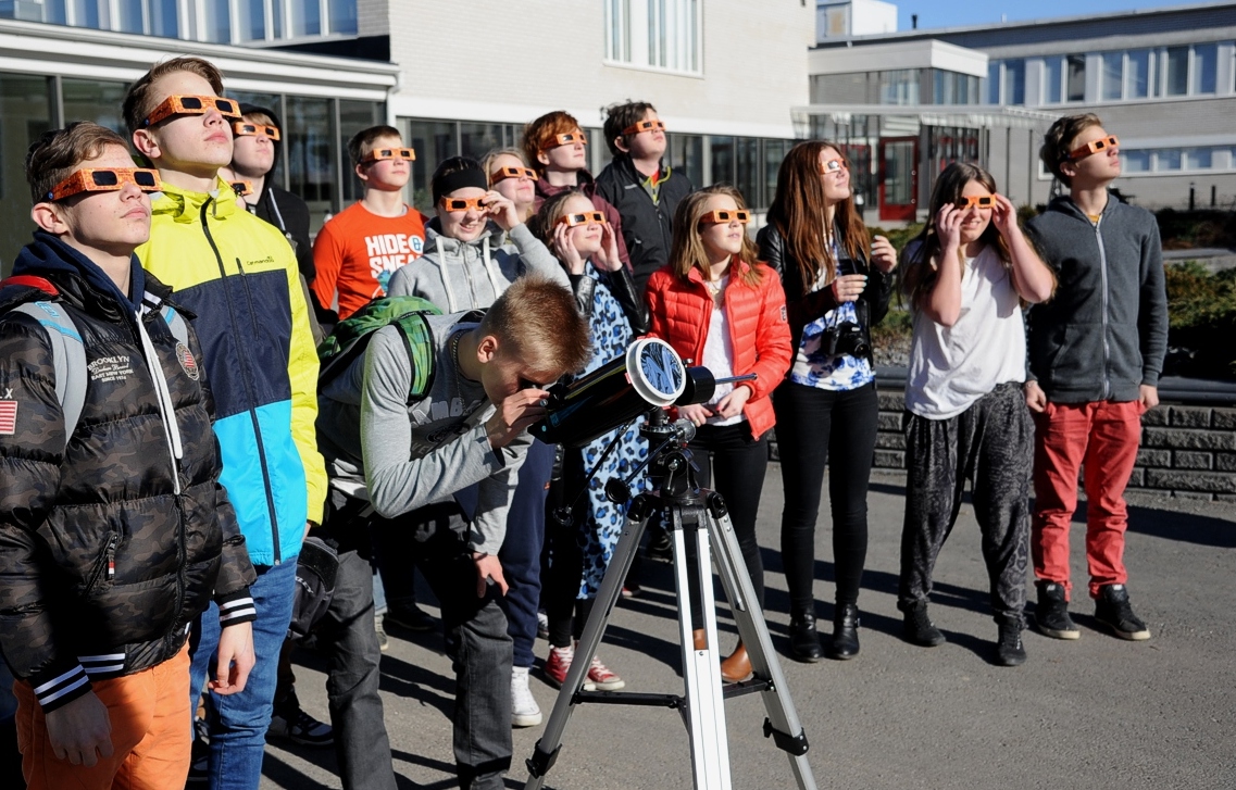 Olika redskap ger olika upplevelser. Teleskopet ger en synnerligen bra bild av solen. Skyddsglasögonen ger den genuina känslan av att verkligen se månen passera framför solen. En kombination av iakttagelser formar den bästa helheten. Ett stort tack riktas till Narom och Nordic ESERO samt andra organisationer som förmedlat skyddsglasögon till bland annat skolelever!