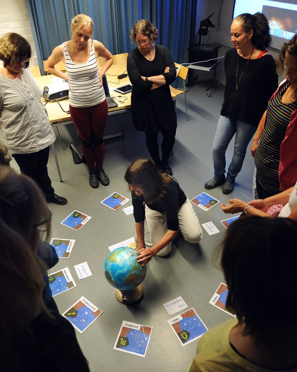 Anna-Karin Jern hade hyrt in URSA‘s mobila planetarium i vilket deltagarna kunde krypa in i och uppleva stjärnhimlen mitt på sommarförmiddagen. Stjärnbilder utgör naturliga orienteringspunkter på himlen. Historier om dessa stjärbilder kan vara till stor hjälp när det gäller att hjälpa minnet behålla informationen ovan ytan.