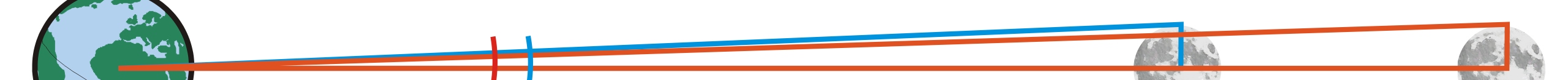 Supermånematematik kan vara en god start på klassrumsdiekussionerna. Skissen nedan är inte alls skalenlig men är en bra utgångspunkt för beräkningar. Hur man uppfattar månen när den är som närmast jämfört med när den befinner sig som längst bort kan beräknas både med trigonometri, företrädelsevis tangens, och genom att bruka de två likformiga trianglarna.