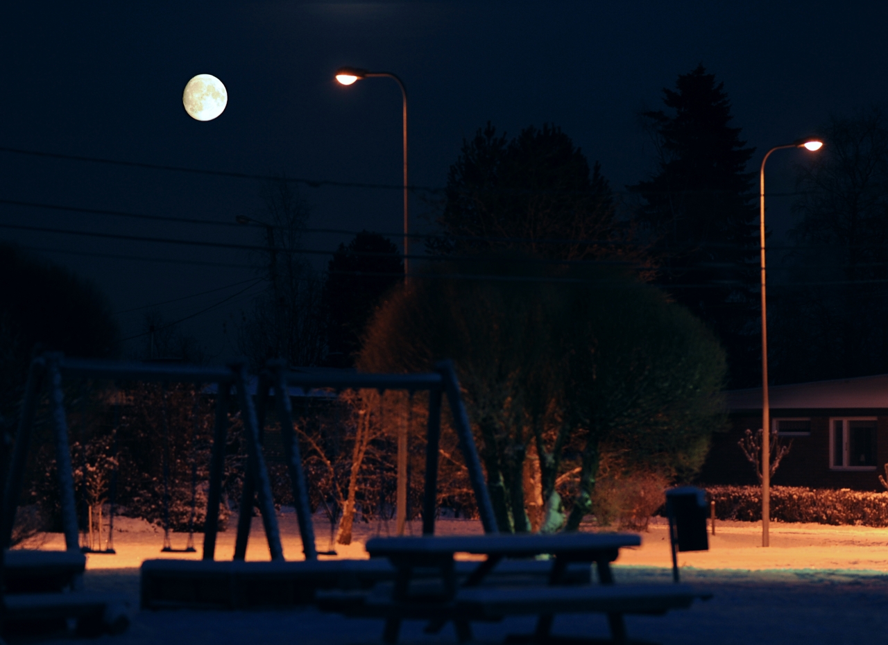 Härifrån är det sedan behändigt att klippa ut en ”måne” enligt de konturer man nyss ritat och därmed skapa en ”supermåne”. Limmar man sedan upp dem på större papper där man skissat en lämplig skyline kan man enkelt se hur mycket det skiljer en supermåne från det si ser när månen är på medelavstånd från oss.
