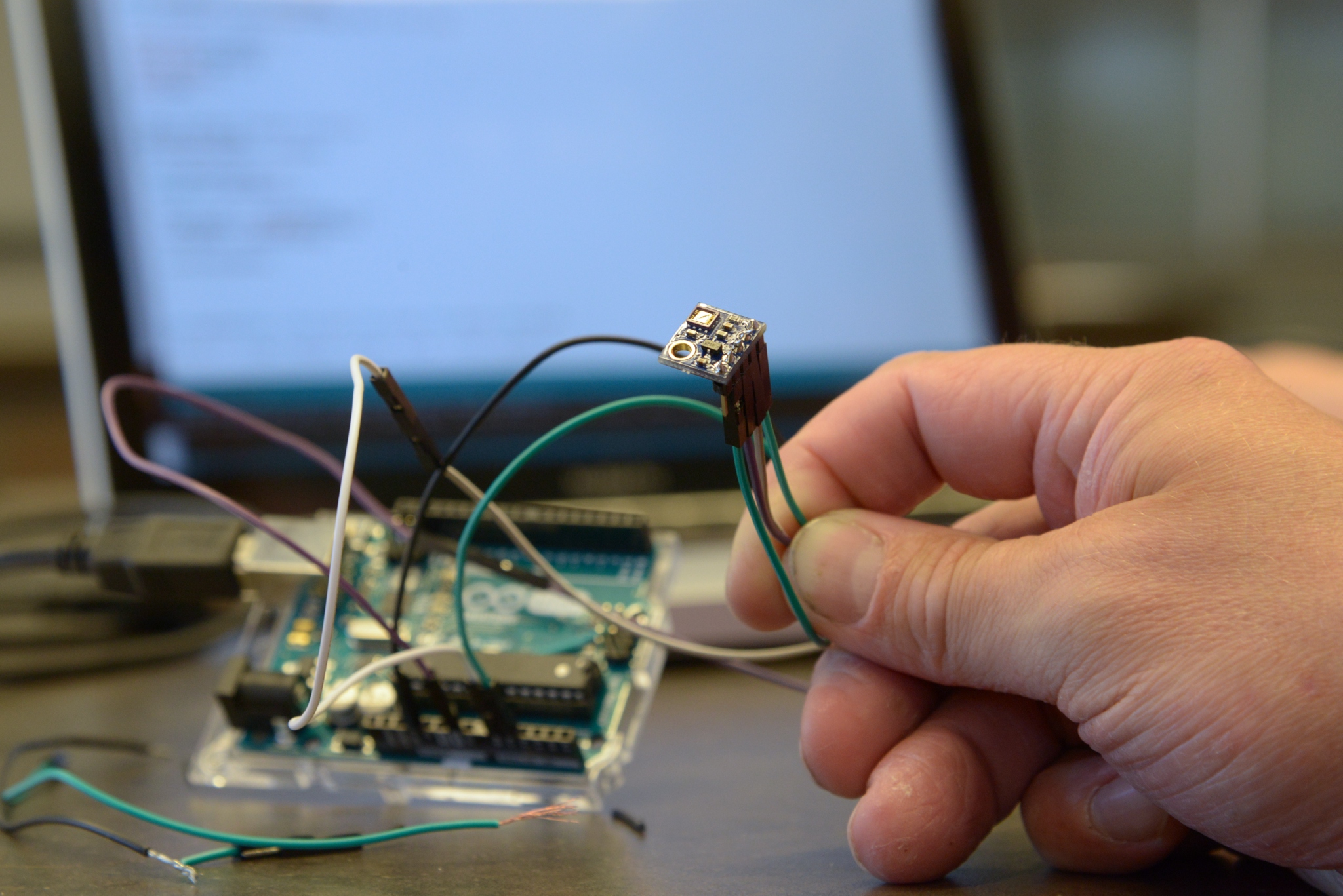 Att koppla ihop en sensor med exempelvis en Arduino kräver inte nödvändigtvis något som helst lödningsarbete. Lite kablar med stiftkontakter fungerar alldeles utmärkt så länge man inte utsätter utrustningen för yttre påfrestningar.