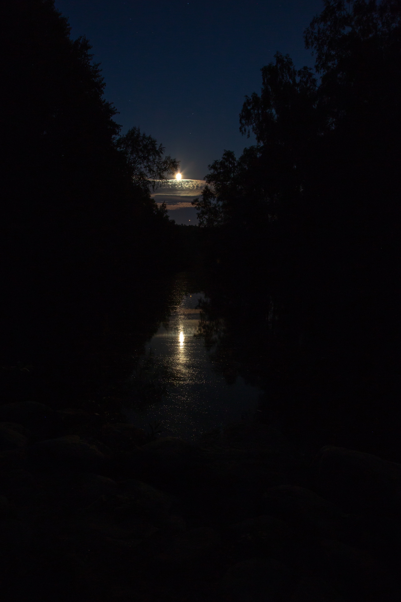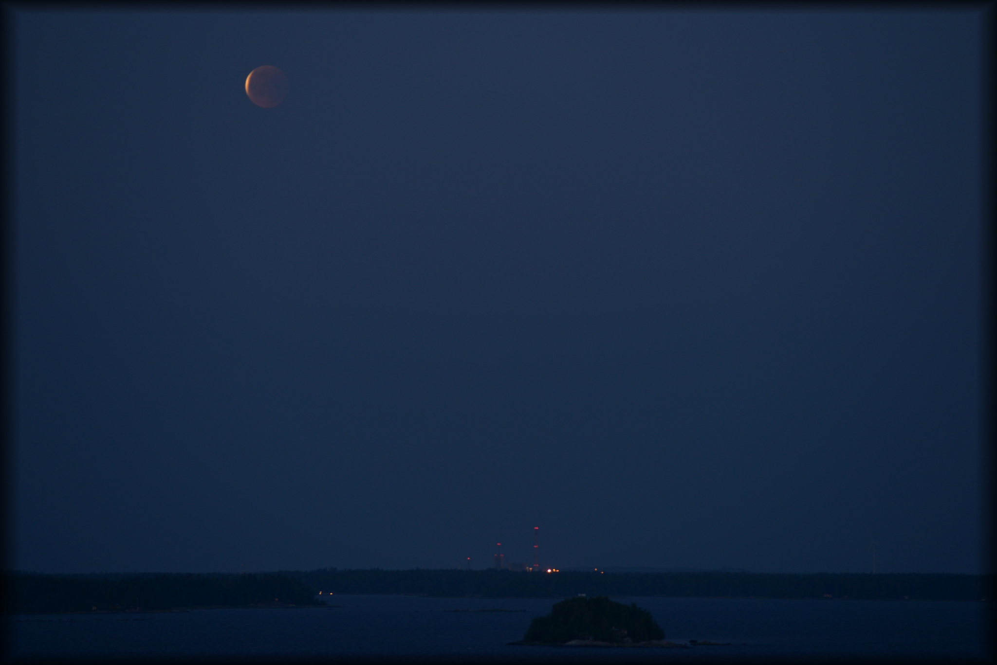 Månen är inte att belasta för att den inte ses lika häftigt röd kring 63°N som i Peters bilder och på de bilder NASA kablar ut i direktsäntning. Himlen är inte mörk ens mitt i natten den här årstiden och himlen är dramatiskt röd om man vänder Månen ryggen.