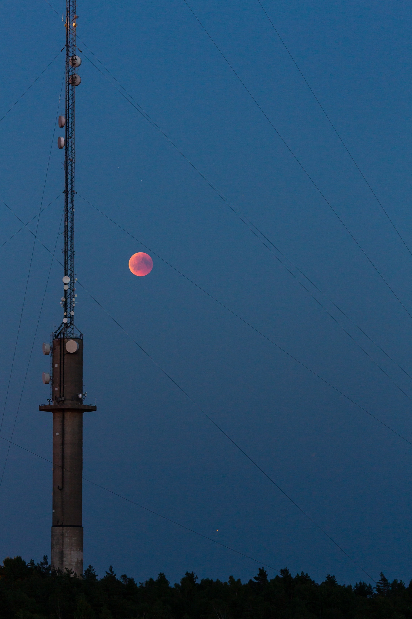 Det är fortfarande gråblått jämntjockt på Replotbron när Peter meddelar att han ser Månen – bakom hela horisontens enda stora objekt: Den lokala telemasten.