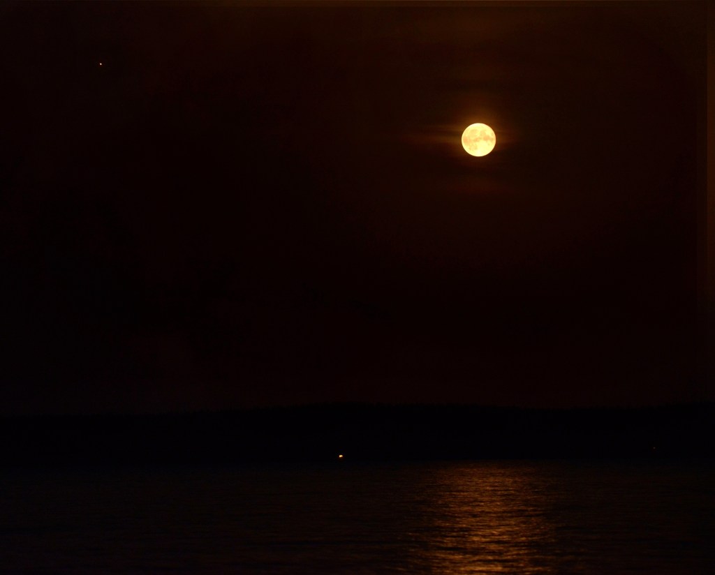 Fredag kväll, den andra oktober 2020, steg Månen ur sin säck av moln, alldeles för högt på himlen för att jag skulle få den bild jag hade fantiserat om. Å andra sidan var det inte fantasier jag var ute efter utan högst informativa dokument som beskriver Månens färd i sin omloppsbana. Denna gång fick en annan ”vandrande stjärna”¹, Mars, tjäna som referenspunkt.