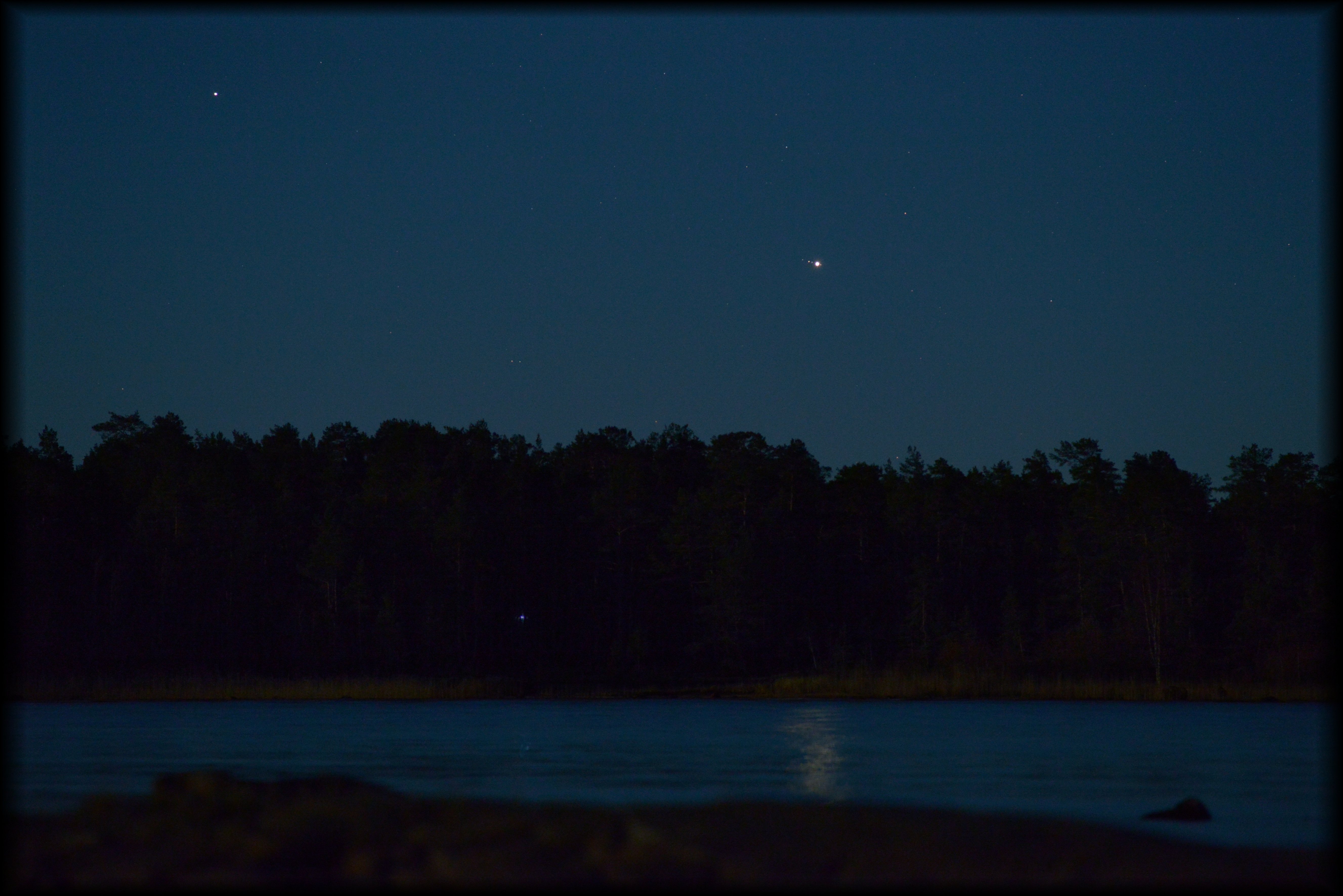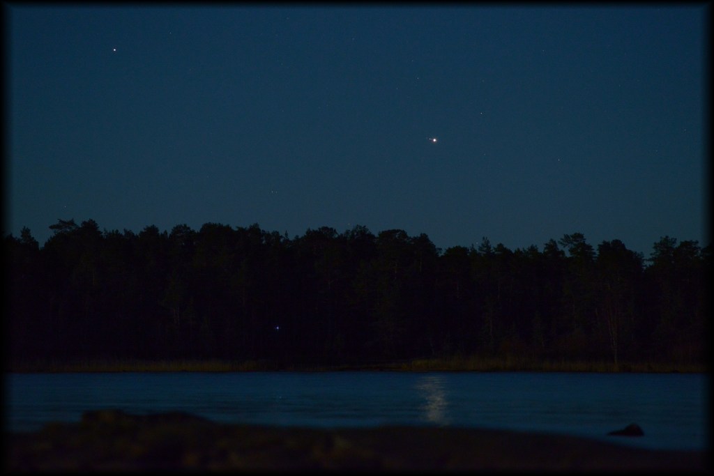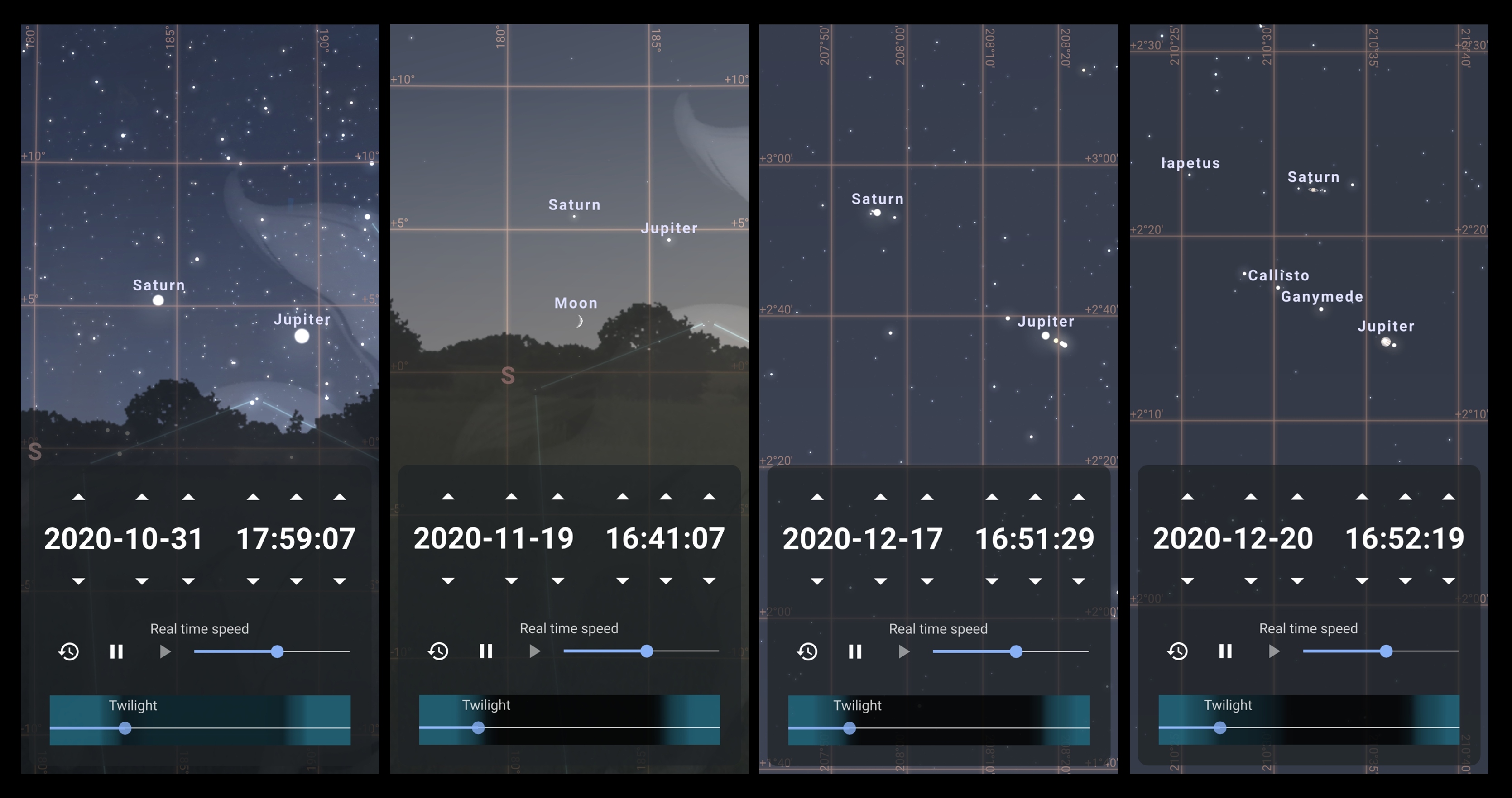 Förutom att planeterna är ljusstarka objekt i skymningen är just dessa behändiga att identifiera. De fyra Galileiska månarna kring Jupiter kan ses med en enkel kikare – eller i en bild tagen med en hyfsad kamera med dito objektiv. Det finns mobilkameror som klarar den biten galant. Därmed är alla tvivel på att det verkligen är Jupiter man tittar på bortsopade. Har man ett teleskop att tillgå avslöjas Saturnus av sina ringar.