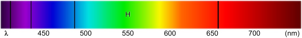 Just gällande H-alpha, 656,28 nm, är det en elektron i en väteatom som ”faller” in från tredje till andra elektronskalet.