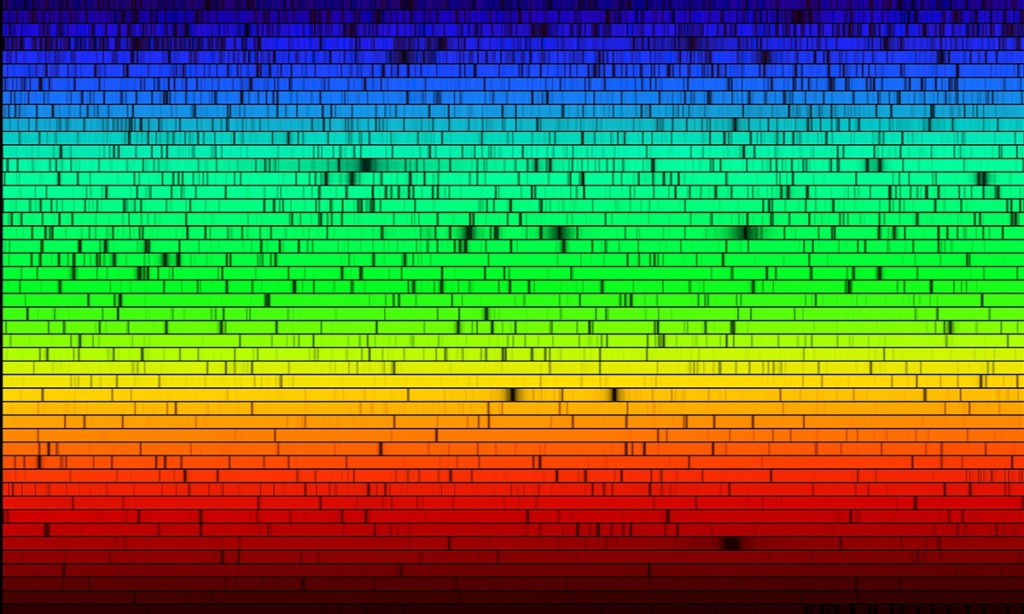 Avståndet i tid (Jo – Det är relevant uttryckt i detta sammanhang) mellan Big Bang och Solens födelse är drygt nio miljarder år. Sannolikt har den då bildats innehållande en hel del material som tidigare utgjort någon annan stjärna. I så fall skulle Solens absorptionslinjer ligga betydligt tätare än de vi ser i Väte-Helium-illustrationen ovan.