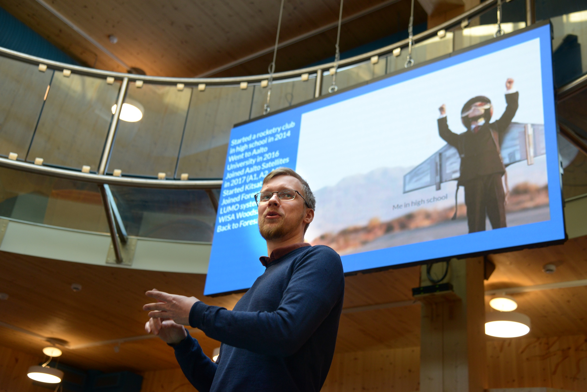 Kvällen avslutader på Vasa Innovation Center där Sture Udd tog emot och berättade om entrepenörsskap och där Samuli Nyman berättade om vägen till ett jobb inom rymdindustrin. Helt klart finns ett visst intresse för rymdrelaterade jobb bland deltagarna i CanSat-turneringen. Konstigt vore det annars. Just därför är det viktigt att få information inifrån rymdindustrin, från företag som är involverade i rymdindustrin och framför allt om studierna på vägen mot ett rymdrelaterat jobb.