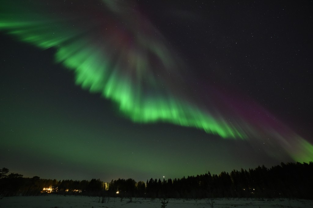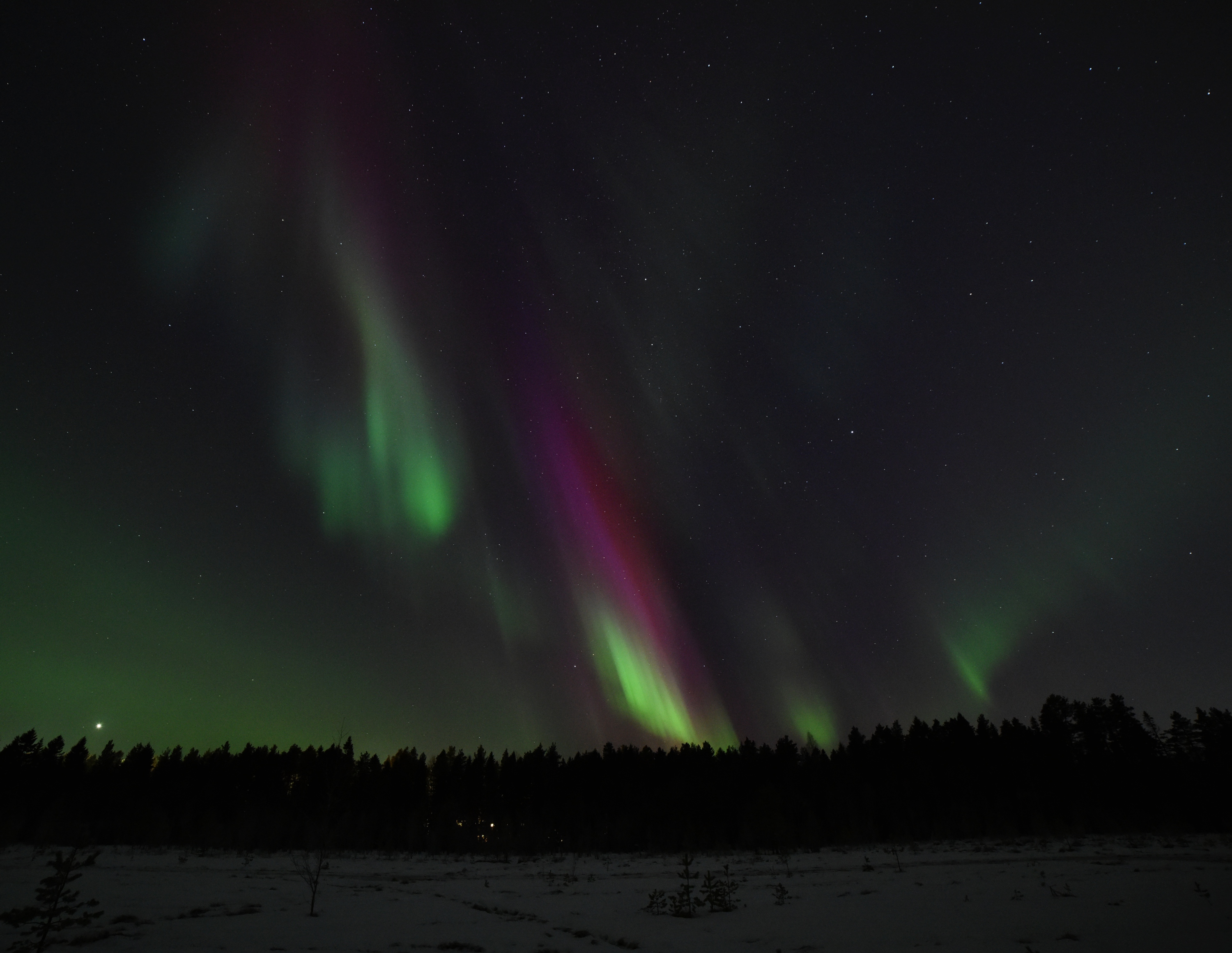 På nyårsdagen 2025 var det dock inte nattetid som norrskenet var som vackrast. Det var under tidig kväll. Tacksamt nog för de som skulle till jobbet den andra januari.