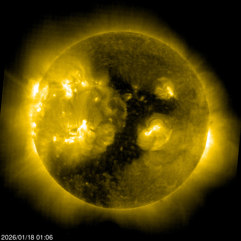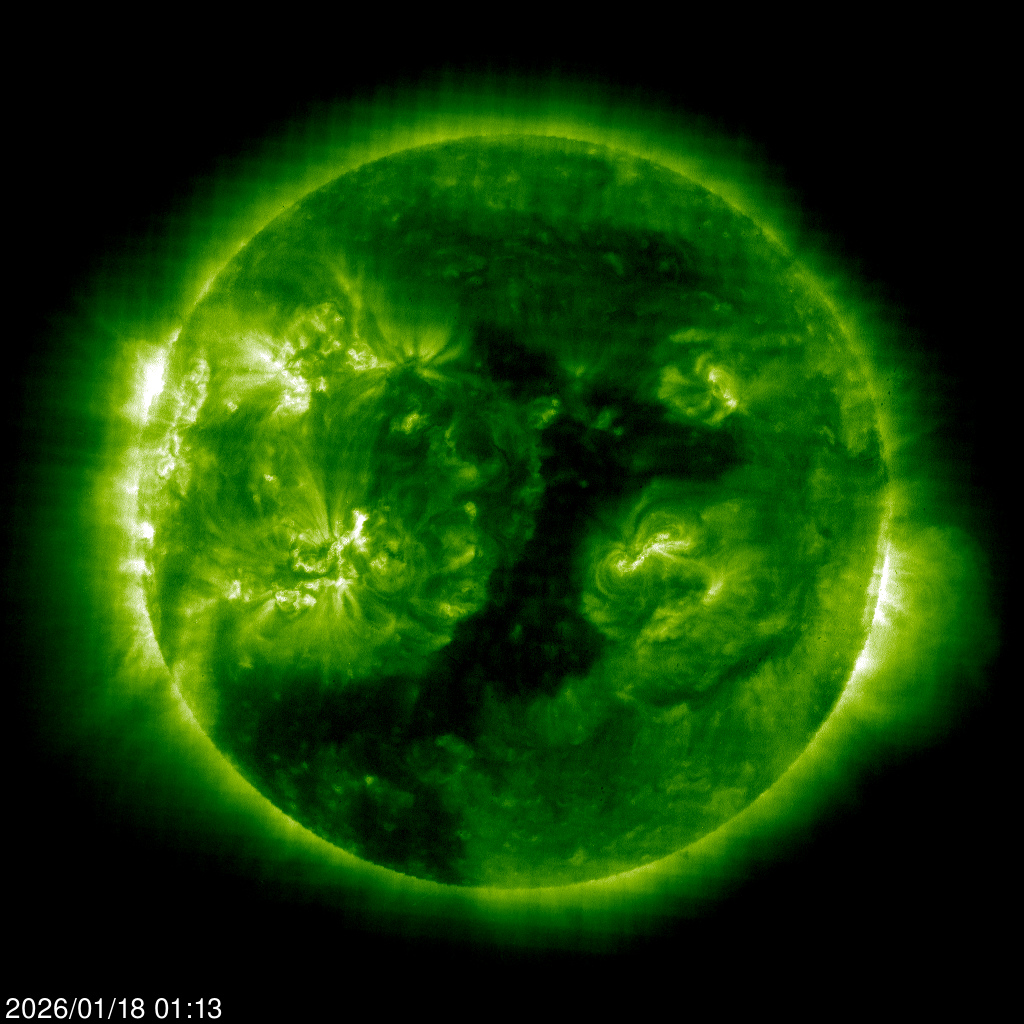 De olika våglängderna ger olika information. Vi ser t.ex. att det ”koronahål” som var vänt mot oss den 18:e januari 2026 syns bäst som ett mörkt område i våglängderna 195 och 284 Ångström. 171 Ångström visar å andra sidan rätt detaljerat var områden med stor aktivitet finns.