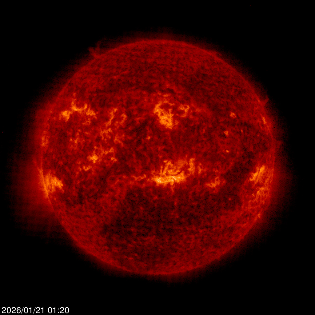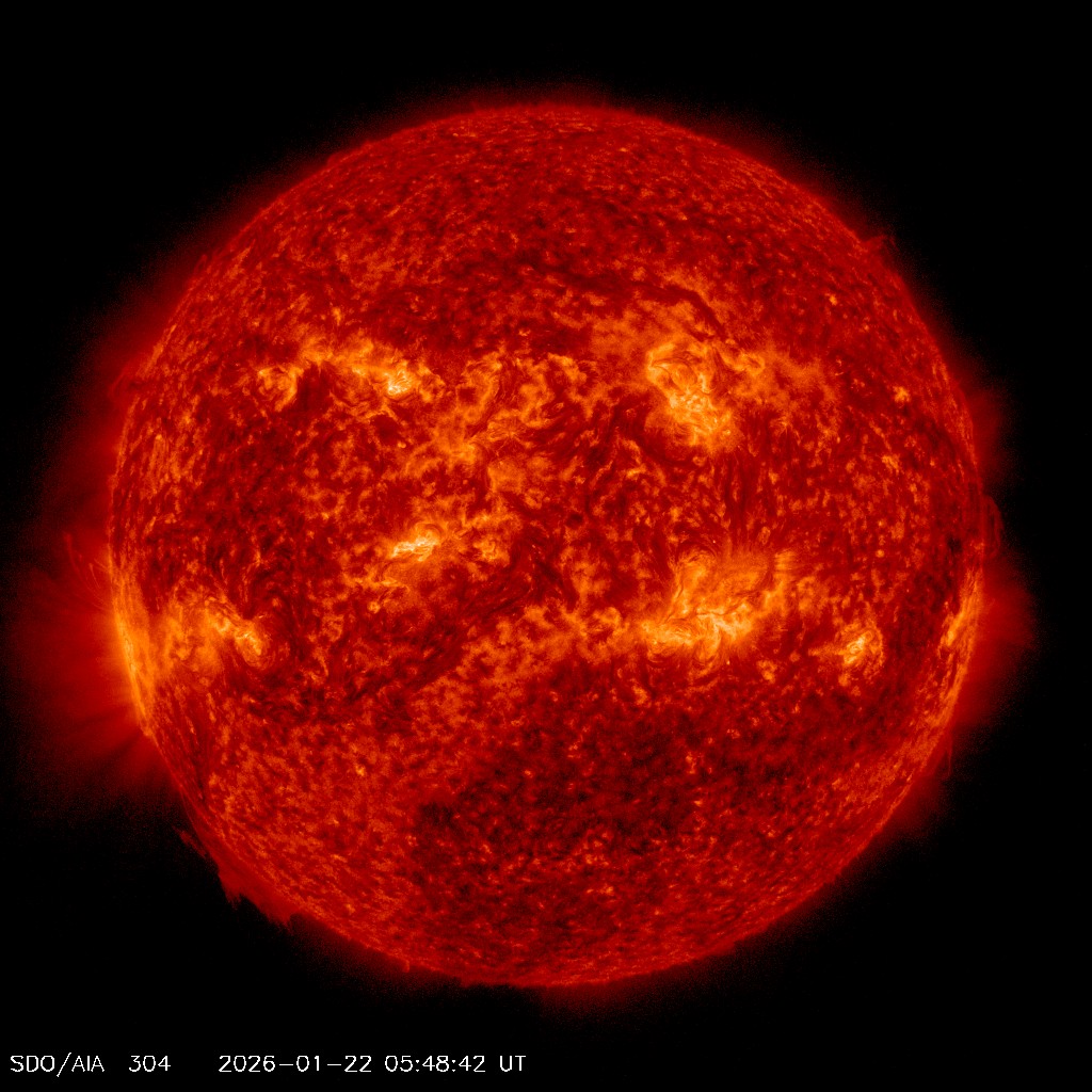 De imponerande protuberanserna som sträcker sig långt ut från Solens fotosfär syns bra i våglängden 304 A. Därför har även SDO sensorer för just den våglängden. Ovan ser vi Solen den 21:a och 22:a januari 2026. Bilden till vänster är tagen från SOHO och den till höger av SDO. Det syns att tekniken på SDO är kring 15 år nyare.
